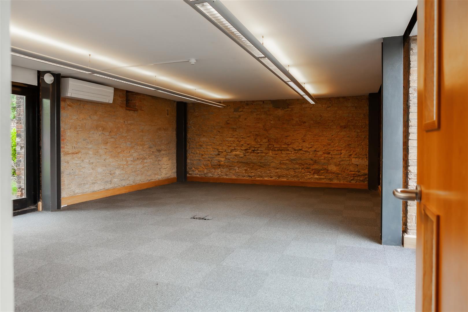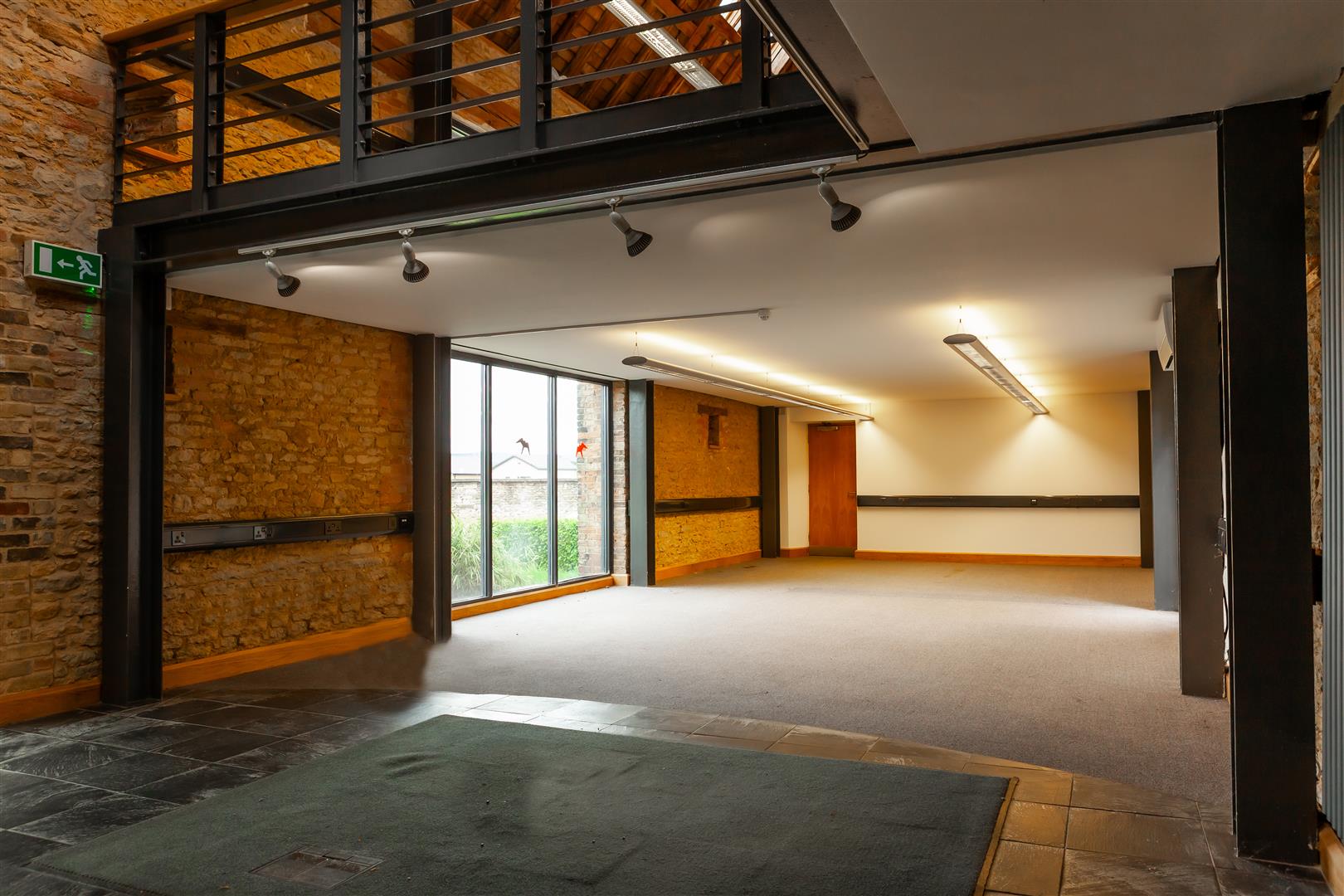The property is a substantial two story converted stone barn under a pitched slate roof with an attractive part glazed frontage. The ground floor is accessed via a main reception and comprises two large open plan areas with store room, kitchen and W.C's. The first floor is open plan providing further accommodation. To the front of the property there is a large tarmacked car park providing excellent parking and to the rear there is a garden. The property is finished to a high specification with attractive period features and benefits from the following;